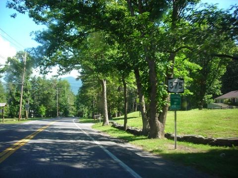 State Route 375 in Woodstock, now known as the Levon Helm Memorial Boulevard. Photo by Flickr user Doug Kerr; published under Creative Commons license.