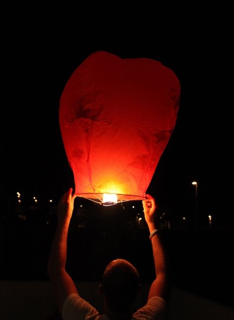 Above: A sky lantern, a paper-and-bamboo balloon with a wax fuel source at the bottom, being released in England in 2010. Photo by Flickr user Keith Williamson.