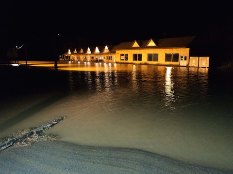 While the river has peaked in Prattsville, things are still getting worse downstream at the Gilboa Dam, where the waters have already hit flood stage and are predicted to rise more tonight, causing "moderate flooding" downstream of the dam:
