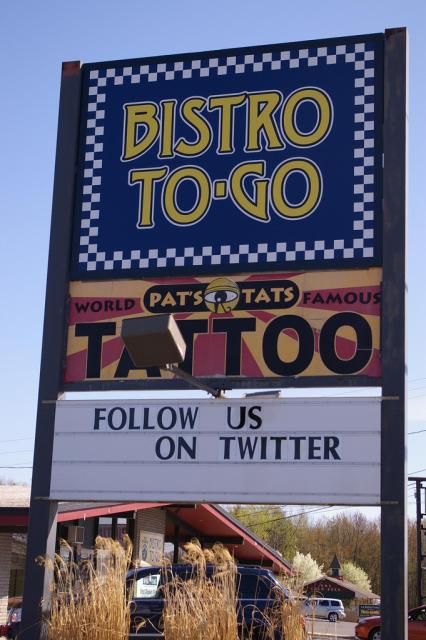 We passed this tattoo parlor's web 2.0 billboard on Rte. 28 outside of Kingston and had to snap a photo. Pat's Tats is definitely online and on Twitter, but so far, it's only got three tweets! Pat, we want more!