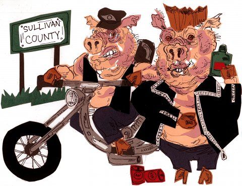 Mayer is an artist who's lived in Bovina for the past seven years. Originally hailing from Detroit, he lived for many years in New York City. These cartoons are created with collage elements. In addition to illustration Mayer makes large scale paintings that have been exhibited widely. Locally, you can see a literary mural he created at the Bibliobarn on Roses Brook in South Kortright with a cast of hundred or so authors. You can contact Mr. Mayer at [email protected]
