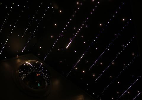 Warp drive: In the Roxbury Motel's new Final Frontier suite, a "window" peers into a skyful of shooting stars.
