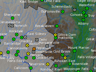 The good news is that according to the NWS's Advanced Hydrological Prediction Service, the only river/reservoir in the Catskills that is expected to flood in the next 48 hours is the Pepacton Reservior. Check out the region-wide interactive map of river gauges -- map locations in orange are where flooding is expected.
