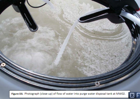 Above: A photo from the EPA's draft report of contaminated groundwater being sampled in Pavillion, Wyoming. Note the foam. Photo on page 3 of Appendix D of "Draft: Investigation into Groundwater Contamination in Pavillion, Wyoming."