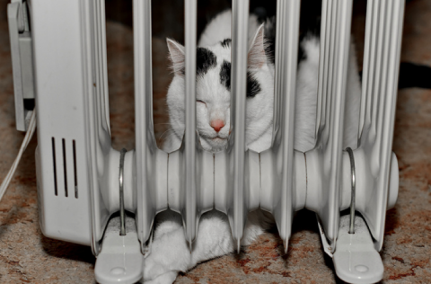 Photo of a cat next to a space heater by Flickr user Mark Tee.