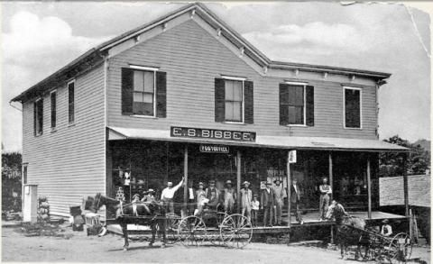 At the turn of the century, Meridale was a self-sufficient village--- there were the following business places: A grist mill, three grocery stores, three blacksmith shops, a tin smith, a saw mill, a wagon factory, a meat market, a shoe repair shop, a hotel and a tailor. The Bisbee store was the clubhouse of the village on a Saturday night; it was standing- room only.