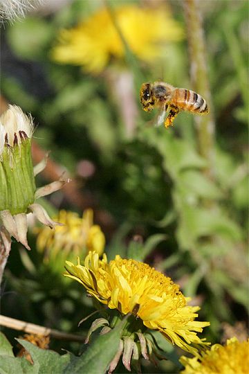 Above: Bees keeping the pollination cycle moving. From Wikimedia Commons.