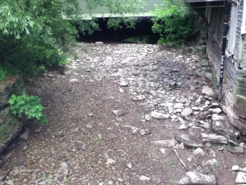 After the Irene floods last August, some work was done on the bulkhead by the town of Middletown, and for a few months, the Binnekill flowed. But the stream soon clogged up again, and is once again dry.