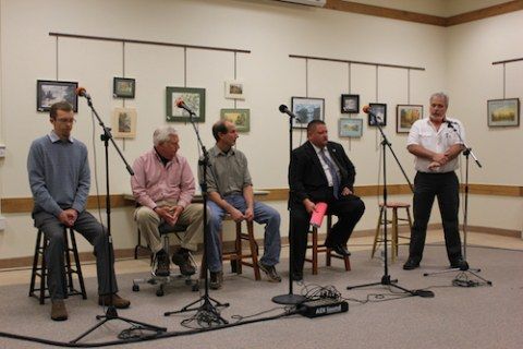 Above: Five candidates face off in an October 23 debate for two open seats on the Sidney town council. Photo by Jason Dole.