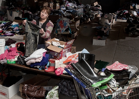 Above: Dorothy Maffei in an Arkville warehouse where she and teams of volunteers sorted and stored tons of clothing donated after Tropical Storm Irene. Photo by Christopher Auger-Dominguez, from our Faces of the Flood project.