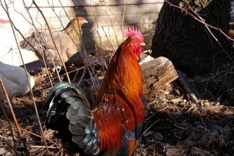 Above: The Watershed Post's resident rooster, Wellington. He's good company out here in rural Delaware County, but we're guessing he wouldn't fit in too well in your average tiny Kingston backyard. Photo by Lissa Harris.