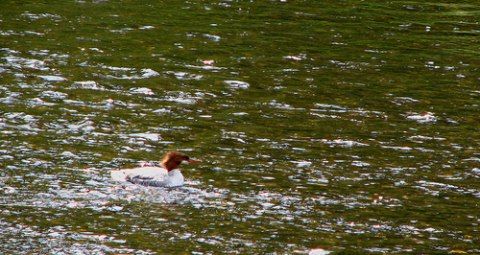 Though not seen as often as the ubiquitous mallard, the merganser is fairly common on Catskills creeks and rivers, where it dives for small trout and aquatic insects. In May and June, the females will seek out holes in tree-trunks to lay their eggs. Some will lay eggs in another female's nest, or even the nest of a wood duck, leaving the resident mother with an adoptive family that she will raise happily along with her own.