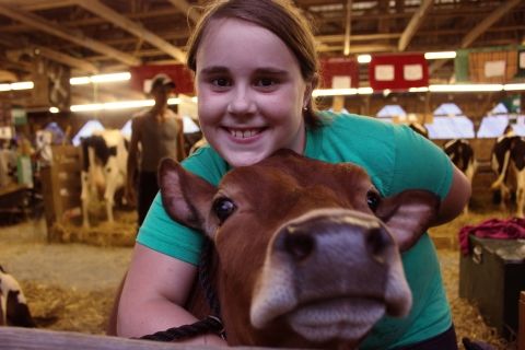 Above: 4-H Moo Juicer Brittney Burk of Bethel NY hangs with her pal Lily, a 4-month-old dairy cow at the 133rd Annual Little World’s Fair in Grahamsville. Young people bring their livestock, produce, and crafts for judging & exhibit days before the fair opens to the public. All photos by Jason Dole.