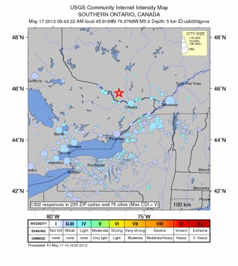 A 4.4 earthquake that struck northwest of Ottawa, Canada at 9:43am on Friday, May 17 was felt far and wide.