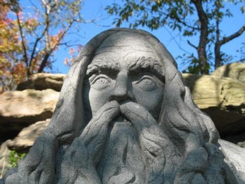 Above: Rip Van Winkle awakening from his twenty-year nap. The eight-ton sculpture on Hunter Mountain, carved from native bluestone, is the work of stone sculptor Keven VanHentenryck, who worked on Rip for 14 years before finishing him in 2009. VanHentenryck will be teaching free drop-in classes in stone carving from July 29 through August 10 in a park on Route 23A near the Hunter town hall. If you want to catch a glimpse of the master in action before showing up for class, VanHentenryck will be in the park throughout this week working on a special project, the Daily Mail reports. Photo from VanHentenryck's website.