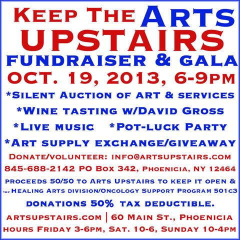 Keep the ARTS Upstairs Gallery Fundraiser & Gala, Saturday, October 19, 6-9pm. 60 Main St., Phoenicia. 845.688.2142. artsupstairs.com.