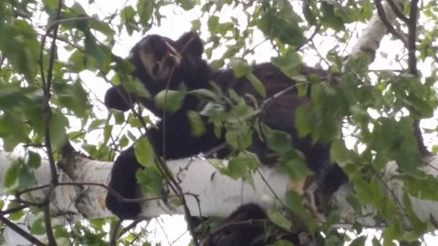 Above: The young black bear climbed a tree outside a campus residence hall before DEC officials were able to tranquilize it and send it home. Photo Courtesy of SUNY New Paltz University Police.