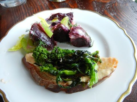 Together out in the country now, the two of them turn out a mix and match of small plates and mains, ranging from $6 for an a la carte order of potatoes to $26 for a dish called “cut of beef” which varies nightly.