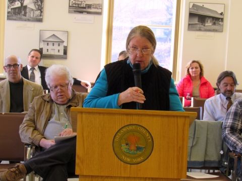 Above: Maureen Wacha of Walton, a motel owner, spoke against the Delaware County bed tax at a public hearing on Tuesday, Nov. 24. Photo by Robert Cairns.
