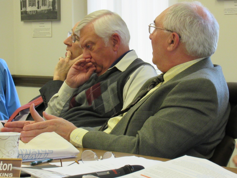 Above: Stamford Supervisor Mike Triolo, right, argues in favor of the bed tax. Also pictured, from left, are Roxbury Supervisor Tom Hynes and Sidney Supervisor Eugene Pigford.