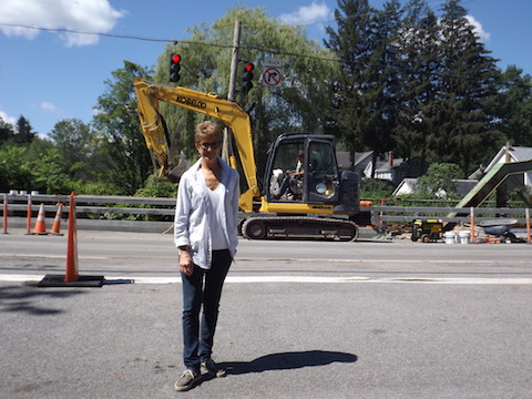 The Kingston Street bridges, a matching pair of steel spans, carry Route 28 over the West Branch of the Delaware River into the village center from the south. Since mid-May, traffic has been limited to one lane as DOT contractors carry out a long-delayed construction project.