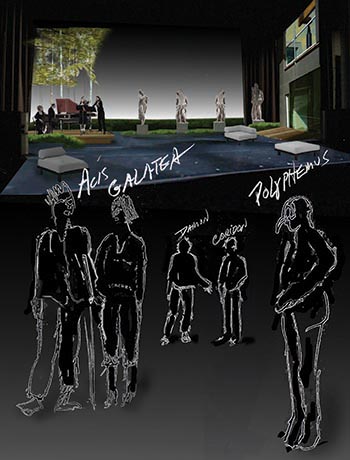 Left: A poster for "Acis and Galatea."