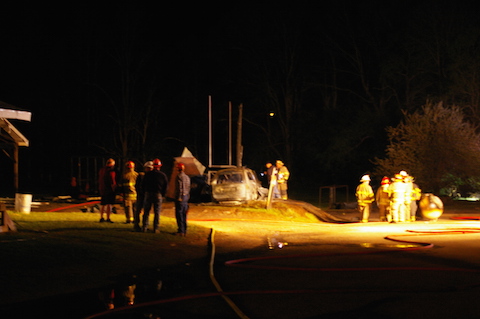 Hood said that the man managed to extricate himself from the burning minivan after it had exploded. By the time firefighters arrived, the man was sitting by the pavilion behind the Legion hall, badly injured.