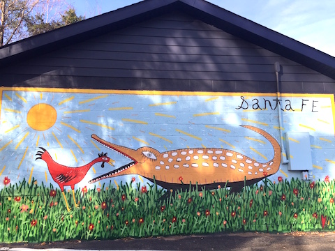 Above: A mural by local artist Scott Ackerman adorns a portion of Santa Fe Woodstock's facade. Photo by Paula Ann Mitchell.