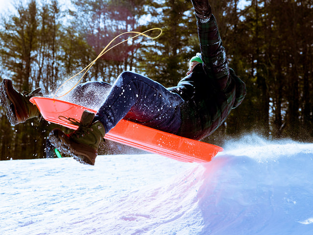 “Sledding on Tinker Street” by Kinoa Garin appears on the winter cover of the 2015 Catskills Outdoor Guide.