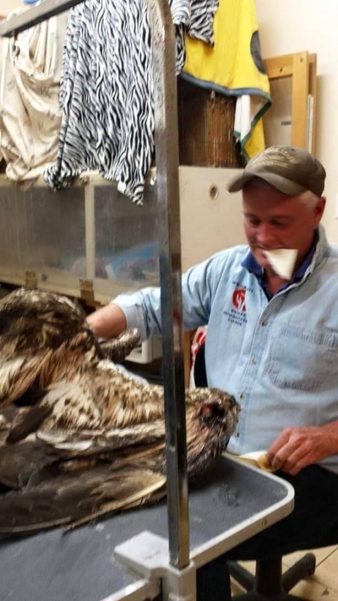 Above: Wes Laraway treats a bald eagle that was shot in Otsego County last week. Photo courtesy of Wes Laraway.