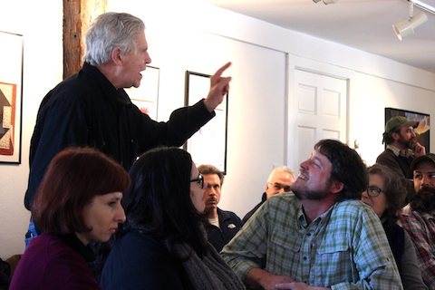 Above: Aaron Bennett speaks about the East Branch of the Delaware River at a lively forum about outdoor recreation and economic development in the Catskills on Saturday, Feb. 27. Photos by Rebecca Andre.
