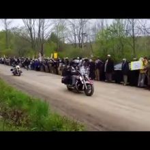 Above: Thirteen "American Bikers United Against Jihad" vehicles drive by hundreds of Islamberg supporters in the Delaware County town of Tompkins on Sunday, May 15. Video and photos by Julia Reischel.