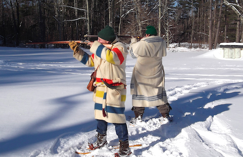 Above: Competitors wearing capotes (a traditional long coat fashioned out of a blanket) compete in the Shandaken Primitive Biathlon. Image via shandakenprimitivebiathlon.net.