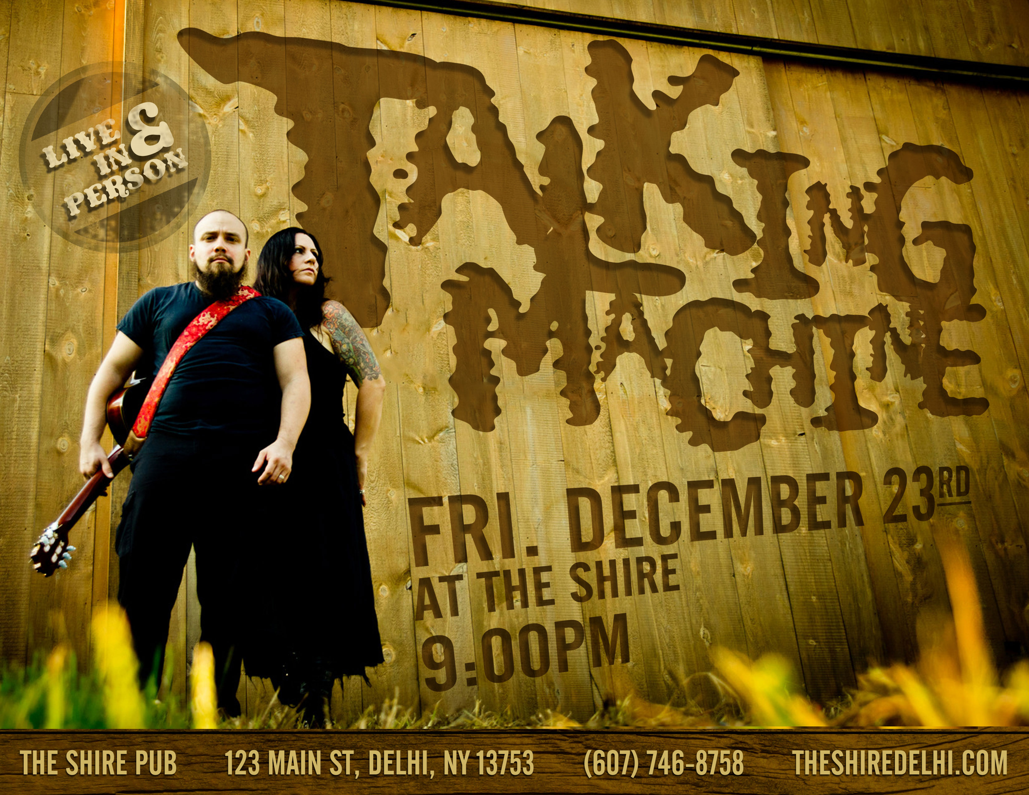 Talking Machine, the culmination of years of combined musical expertise. Separately the two are accomplished musicians in their own right, yet together the duo utilize their experience, technical prowess, and style to create a pleasing, cathartic assault on the senses. Recently, the couple has taken on a talented new member to play drums, bringing you a fully formed rock group. Playing covers ranging from Led Zeppelin to The Pretenders and Stone Temple Pilots to Lady Gaga. Check them out on facebook- https://www.facebook.com/talkingmachineofficial