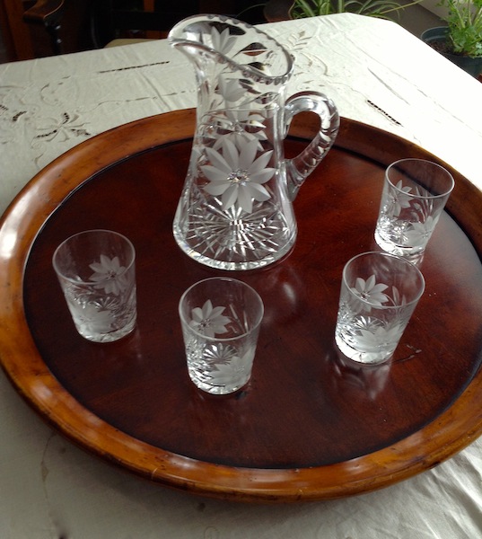 Hand-cut Crystal Pitcher and 4 matching Tumblers