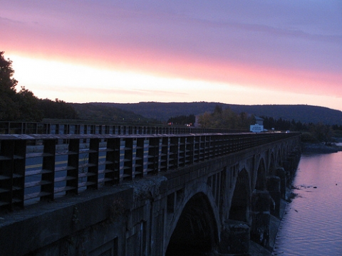 Above: Sunrise over the dividing weir that separates the Ashokan Reservoir's east and west basins. Photo by Tim Cox; shared in the Watershed Post's Flickr group pool.