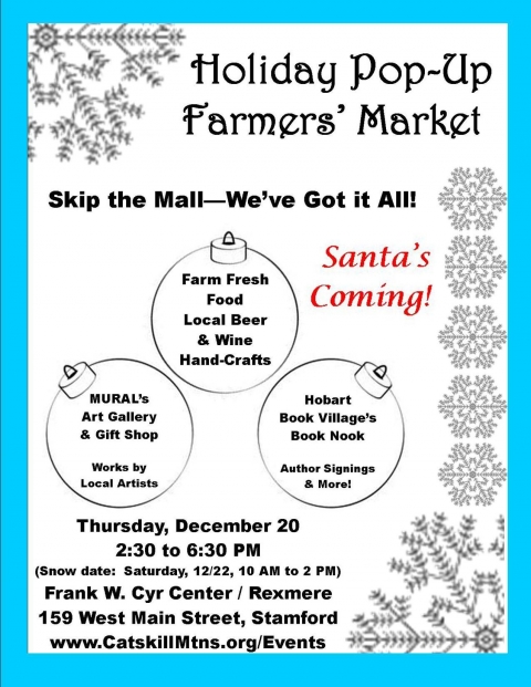 The forecast for this afternoon calls for the world to continue (by most accounts), and also some snow in Delaware and Sullivan counties. Let's get a dusting on those bare Monticello branches for the holidays.