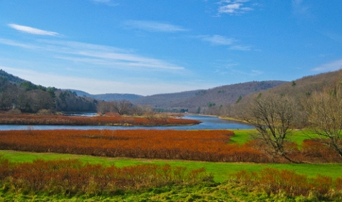 Above: January 2012 photo of contractors at a staging area in Cobleskill preparing to haul a three-bedroom temporary housing unit to a site in Prattsville, for survivors of the Irene floods. Photo by Hans Pennink; from FEMA website.