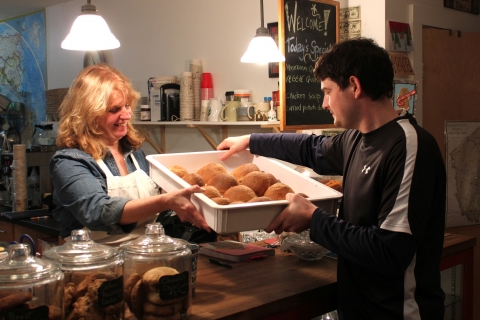 “You have to do other things,” says Ellen Marino, who runs Floyd & Bobo’s Bakery and Snack Palace in Liberty with Louie Petraglia. They offer breakfast sandwiches, lunch, soups, and more. They even package and sell their own marinara sauce.