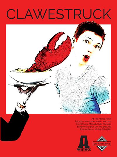 11.22-“CLAWSTRUCK” CIDER DINNER FEATURING AWESTRUCK-7pm Four course dinner and cider pairings $50 per person. Reservations suggested. This Sponsored Story is paid advertising. See more information about Andes Hotel.Tags: 11.22-“CLAWSTRUCK” CIDER DINNER FEATURING AWESTRUCK-7pm Four course dinner and cider pairings $50 per person. Reservations suggested.Place: Andes