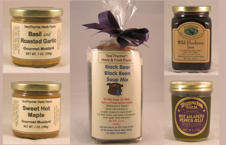 Just in time for the holidays, we have a full pantry of locally produced and/or grown foods. We have a wonderful selection of jams, pepper jellies, soup mixes, and mustards, all from Will and Cheryl Patterson at TeaThyme. They make sure these are made from the freshest ingredients, grown on their farm in Denver, NY. And they are nicely packaged too – great for gifts.