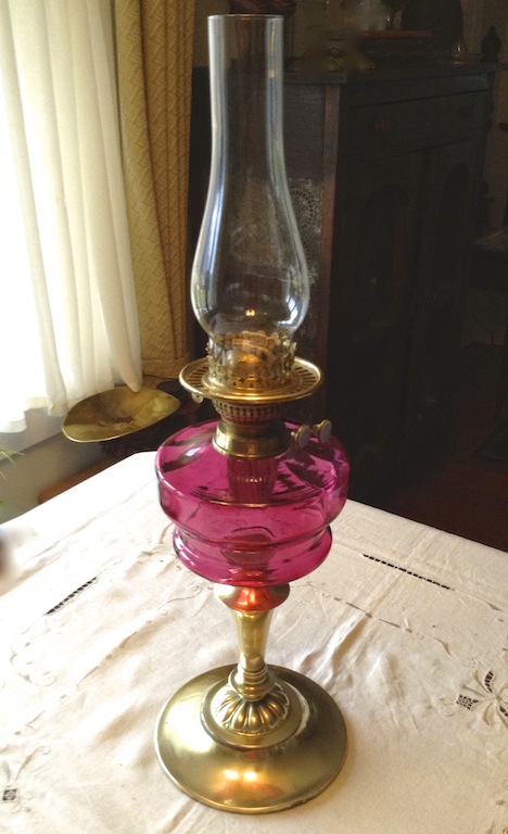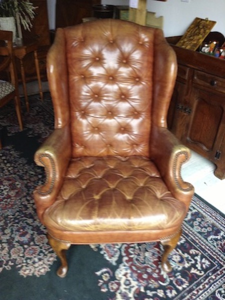 Vintage leather wingback armchair and the exquisite 2 wick cranberry glass and brass kerosene lamp are just a few of the hundreds of items waiting for new homes. In the meantime they will be well taken care of here with us.