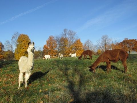 Our goats have come home victorious from their job "goatscaping" at the Loudonville Reservoir. A successful project all way around. Nice to have you home, Toast, Butter, Minnie, Blondie and Cleopatra. Right now, they are in the top field, reunited with some of the llamas and alpacas. In a couple weeks, they rejoin the rest of the does and our new buck for breeding.