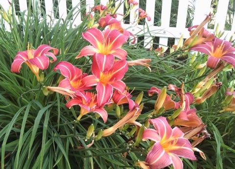 Why are daylilies such mainstays of our Catskills gardens? They are super sturdy and they survive most conditions but flower best in full sun. All daylilies are members of the genus Hemerocallis, which means ‘day-beauty’ (hemero- = day, -callis = beauty). The name refers to the transient beauty of the individual flower which lasts for only a day, but the daylily makes up for its short-lived flower by producing quantities of blooms. A typical healthy clump of daylilies will produce dozens and dozens of blooms over many weeks. Also, different types of daylilies bloom at different times, so it is possible to have daylilies in bloom from mid-June when the earliest ones bloom in the Catskills until frost.