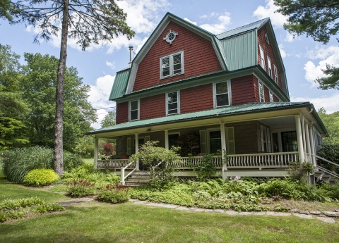 Country House Realty's dreamy listing, a restored Dutch Colonial in Jeffersonville. Drink in hypnotic views while relaxing on the extra-wide covered porch - literally an outdoor living room - or take a gentle stroll to the year-round stream at the foot of a wooded hillside.