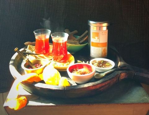 RAJ: Rooibos-based and blended with coconut shavings and masala spices—ginger, cinnamon, cardamom, pepper and coriander. Buy now.