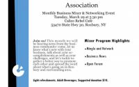 Greater Roxbury Business Association (GRBA) invites you to its monthly business mixer and networking event Tuesday, March 29 at 5:30 p.m., at Calico Rebel Café, 53470 State Hwy 30, Roxbury. GRBA welcomes the opening of this new downtown business, and... Read more