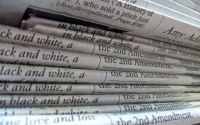 Photo of stack of newspapers, by Daniel R. Blume, from Wikimedia Commons. Published under Creative Commons license.