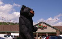 Photo of twee chainsaw bear in front of the Margaretville Freshtown by Lissa Harris.