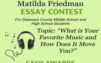 Writers in the Mountains (WIM) is sponsoring the fourth annual Matilda Friedman essay contest for middle school and high school students throughout Delaware County. The Board of... Read more